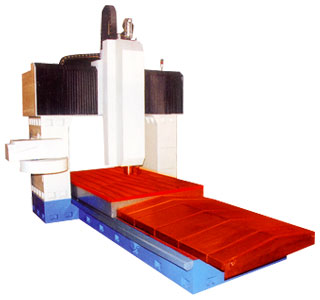 TH4020 bare machine is integrally formed by precision casting through resin sand type high-strength cast irons, with reasonable ribbon structure, good rigidity, totally aged treatment and strong stability. The lathe adopts a gantry structure and the worktable is movable. The main axle-box part adopts a dual-cylinder balance mechanism so as to ensure the motion stability of the main axle-box. The crossbeam adopts a large-dimension section design so as to reinforce the bending stiffness and torsional stiffness. Rolling guideways are assembled on the upper surface and side surfaces of the crossbeam so as to reinforce the anti-rolling capability of the main axle-box. Hard-rail quenching process and sizing process are applied to Z axis, thus being beneficial to improving the cutting stability and wearability. The guideway adopts imported 65# overloaded pre-tightened guideway. The screw rod adopts imported R80-010 C5-grade grinding screw rod, with two ends being fixed and pre-stretched. All bearings are imported P5-grade bearings in pair. The mainshaft is BT50 straightly-connected precision mainshaft produced in Taiwan, with the maximum rotating speed of 6000r/min. Stainless steel protective shields are provided before and after Y axis, X axis adopts a flexible organ cover. The flexible organ cover is also arranged below the handpiece. Furthermore, automatic lubricating systems are provided, and tool storage mounting surfaces are reserved. The appearance of bare machine shall be painted with required colors. The bare machine does not contain any electrical apparatuses.